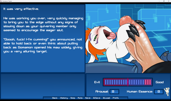 Lover/Slave Slut Ending: You get this Ending if the "Evil Bar/Good Bar" is large enough that either a thought cloud with a dick or hearts float by his head.